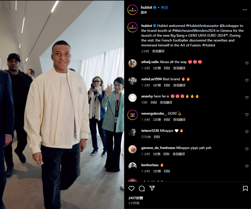 作為宇航手表的品牌大使。姆巴佩被邀請(qǐng)參加瑞士手表展。法國(guó)前鋒在鏡頭前微笑,但姆巴佩沒(méi)有發(fā)表任何評(píng)論,因?yàn)樗诒荣愔辛钊耸谋憩F(xiàn)。